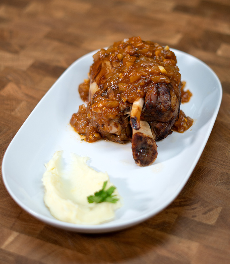 - Finish the dish adding to the knuckle a little bit of sauce.