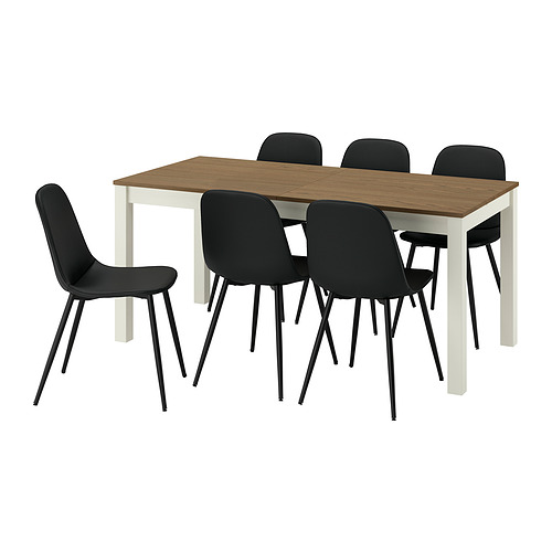 ÅLHULT / NORDMANSSKÄR table and 6 chairs, beige / brown / Bomstad black black