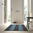 This rug in a traditional style with beige stripes and blocks in blue and black has a timeless expression. Easy to match with furniture and textiles and goes just as well in the bedroom as in the hallway.