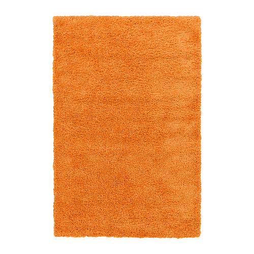 Una alfombra rectangular naranja llamada ÄRENDE con una superficie suave y peluda de polipropileno.