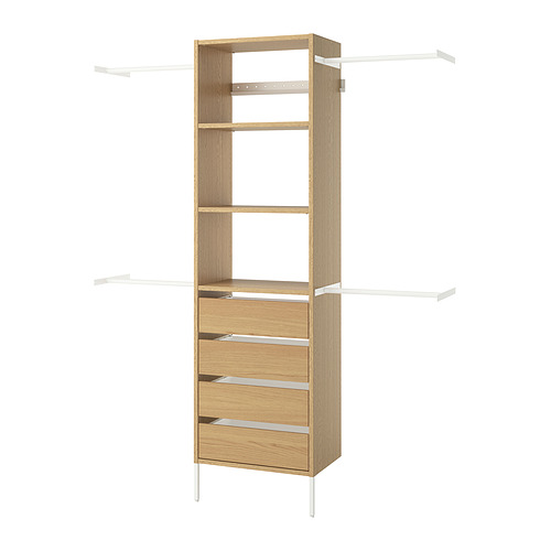 With AURDAL storage system, you can customize a solution for any reach-in or walk-in closet. Beautifully brushed veneer gives a tactile finish with a distinct sense of wood.