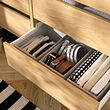 With AURDAL storage system, you can customize a solution for any reach-in or walk-in closet. Beautifully brushed veneer gives a tactile finish with a distinct sense of wood.