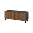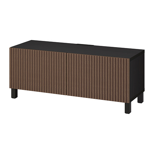 BESTÅ TV bench with doors, black-brown Björköviken / Stubbarp / brown stained oak veneer