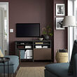 BESTÅ TV bench with doors, black-brown Björköviken / Stubbarp / brown stained oak veneer