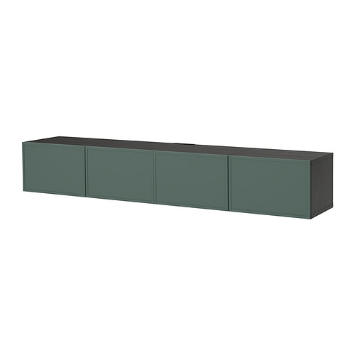 BESTÅ TV bench with doors, black-brown / Krukmakare dark gray-green