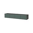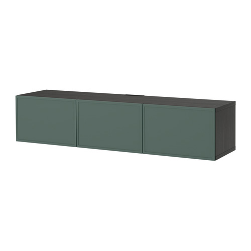 BESTÅ TV bench with doors, black-brown / Krukmakare dark gray-green