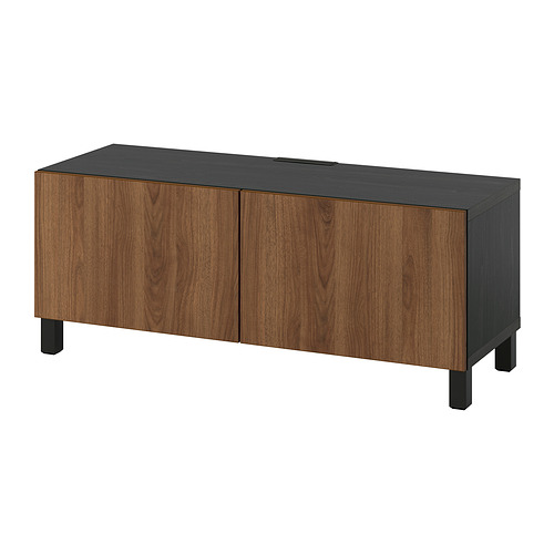 BESTÅ TV bench with doors, black-brown / Lappviken / Stubbarp walnut effect