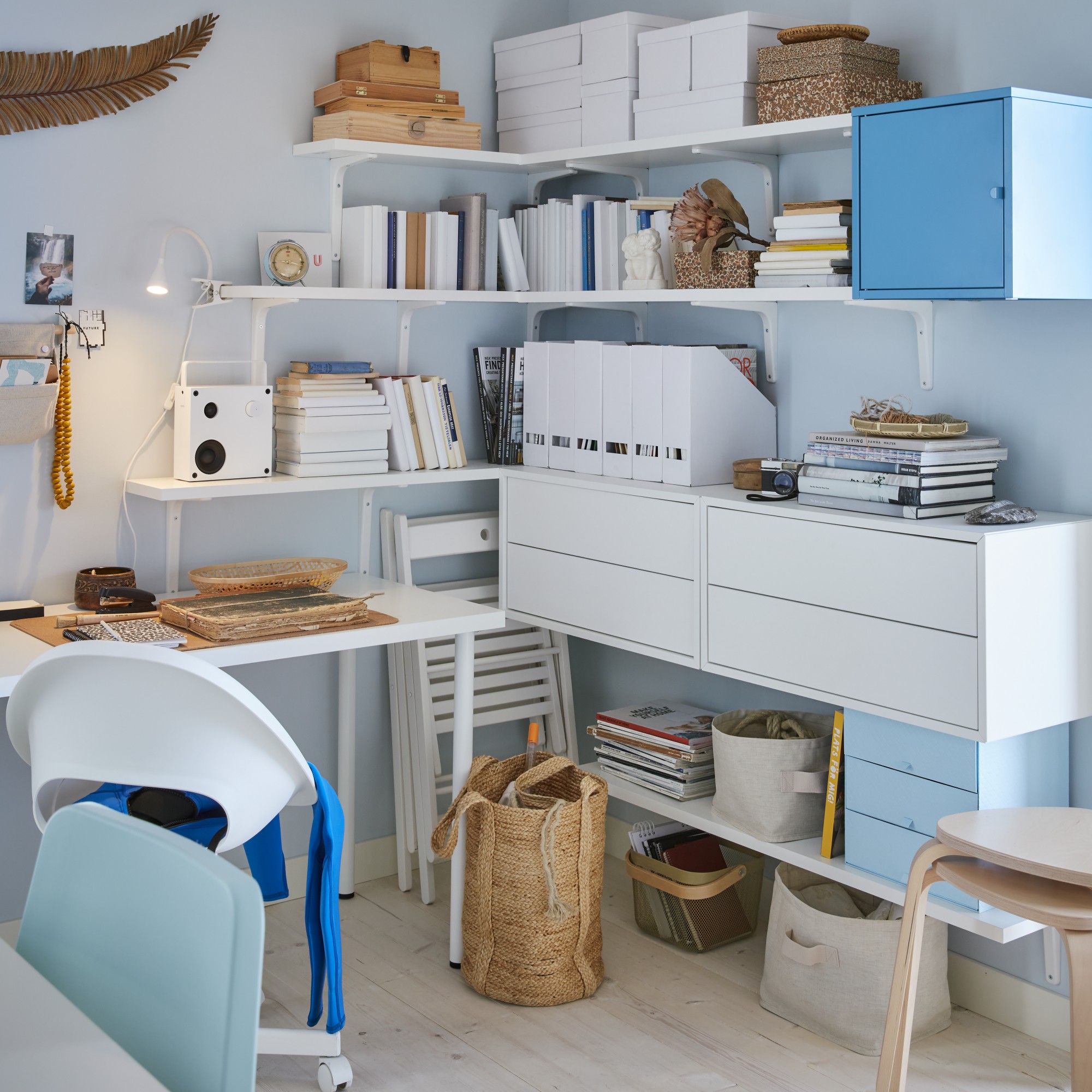 When product developer Petra Kammari Enarsson was young and often moved, she furnished with old fishing boxes given to her by her grandfather. Years later, when developing EKET storage series, she remembered those boxes. Imagine if EKET could be just as flexible – but more playful? Petra and her team developed a mix of shelves, drawers and cabinets in different colors and shapes to be combined as you like. When life and needs change, just move, add or remove parts.
