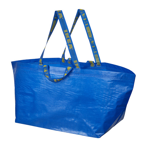 Tricky question – but allow us to explain what we’ve done to make FRAKTA as sustainable as possible. More than 90% of the bag is made from recycled material, of which at least 70% is plastic with a previous life in the food or plastic industry, like jumbo bags for milk powder or food containers. We added a small percentage of pigment and virgin material to give the bag its iconic blue colour and to ensure its durability and that it enjoys a long life, carrying up to 25 kg.