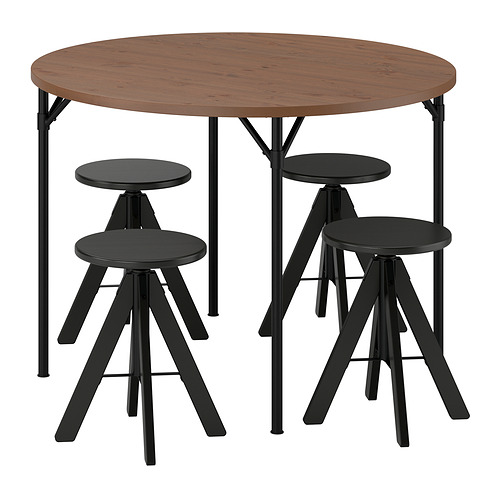 GRÖTÅN / RUDSTORP table and 4 stools, pine brown stained / black