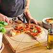 Serve pizza on this rustic chopping board in beautiful bamboo. Need a break from pizza? Flip HAVSTULPAN over to get a chopping board with a groove that catches juice from what you're cutting.