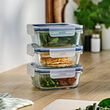 Square food containers in a practical 3-pack, perfect if you like to prepare meals for several days.