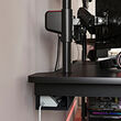 A true all-in-one gaming desk ─ your base camp and battlefield, where you can stand or sit. There is room for 3 monitors, a pegboard for your gaming gear and a hook for your headphones. Game on!