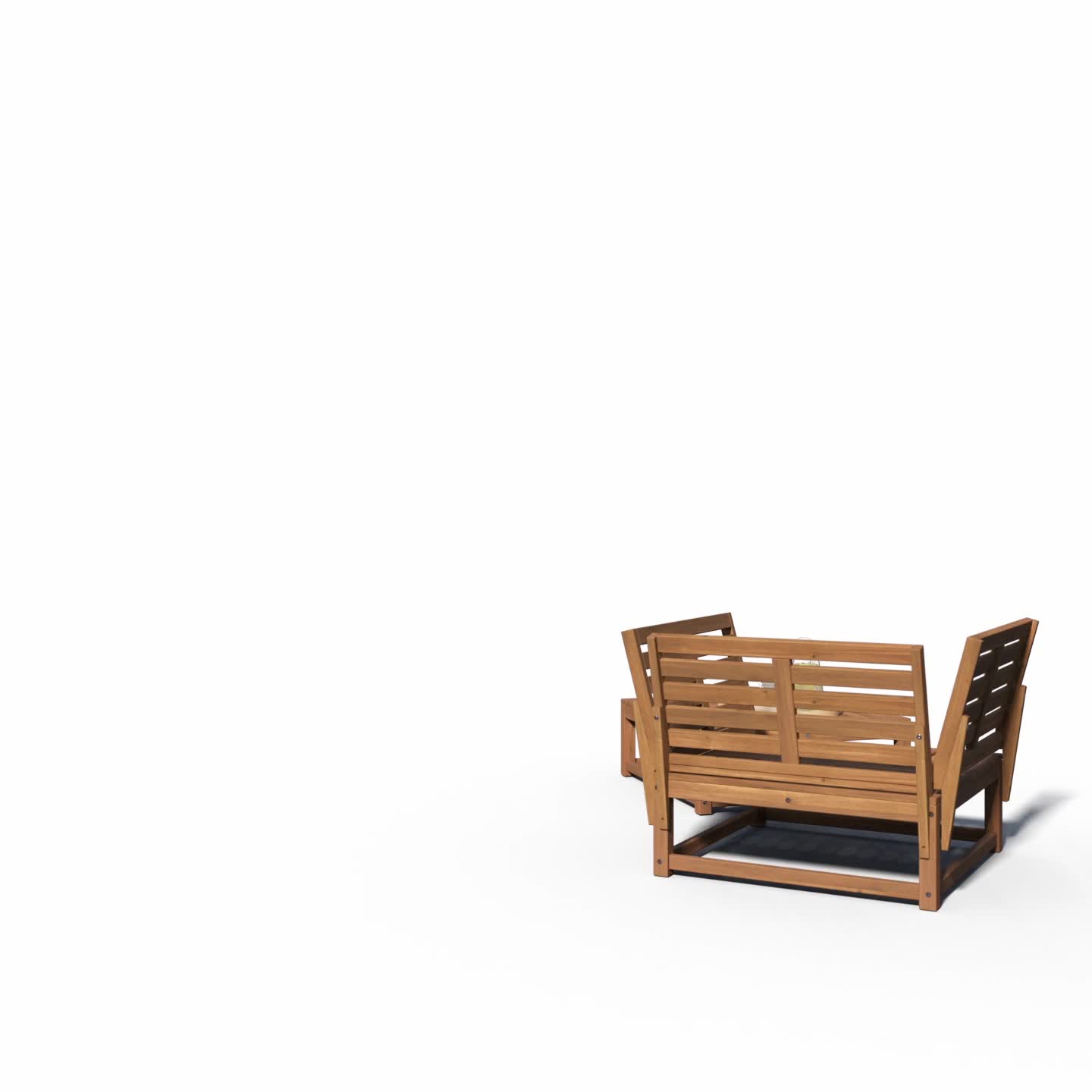 The furniture is made of acacia, a naturally durable and sturdy hardwood because of the high density of its wood fibers.