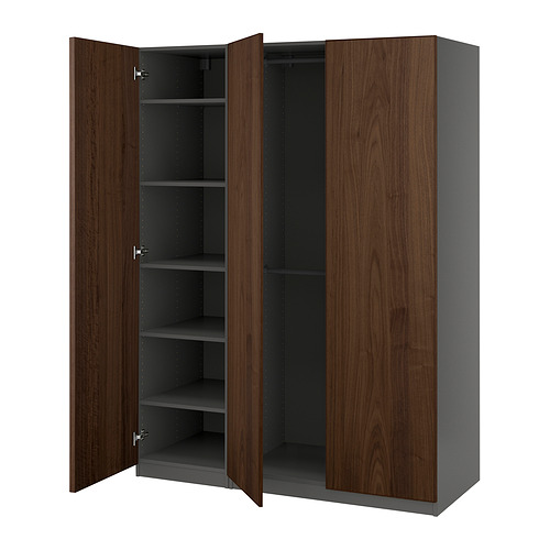 PAX / BJÖRNESKOGEN wardrobe combination, dark gray / walnut veneer