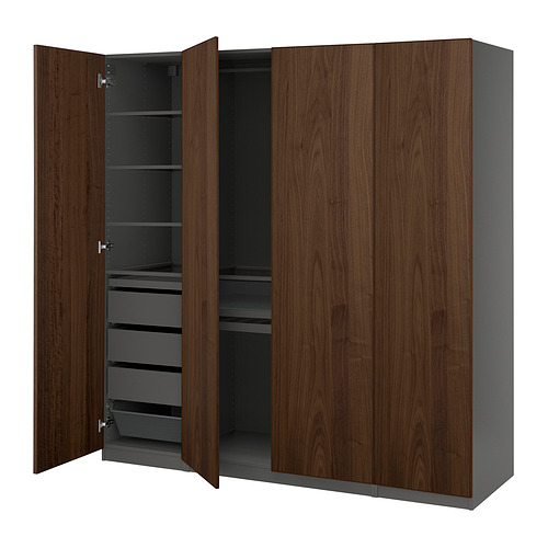 PAX / BJÖRNESKOGEN wardrobe combination, dark gray / walnut veneer