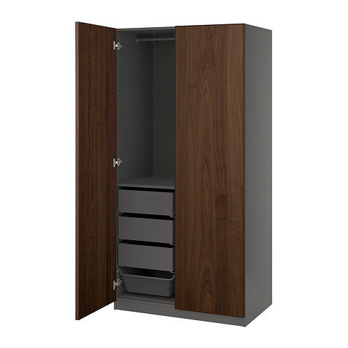 PAX / BJÖRNESKOGEN wardrobe combination, dark gray / walnut veneer