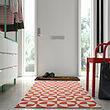 This flatwoven rug's playful circle pattern in orange puts you in a good mood and gives the room a warm and welcoming feeling every time you enter.