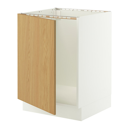 SEKTION base cabinet for sink, white / Sinarp oak veneer