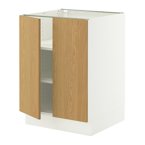 SEKTION base cabinet with shelves / 2 doors, white / Sinarp oak veneer