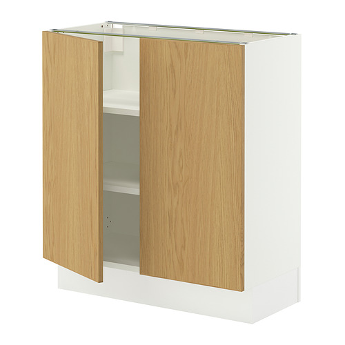 SEKTION base cabinet with shelves / 2 doors, white / Sinarp oak veneer