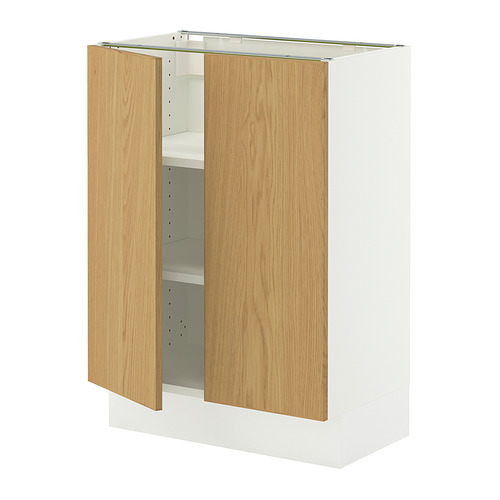 SEKTION base cabinet with shelves / 2 doors, white / Sinarp oak veneer