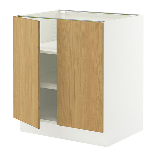 SEKTION base cabinet with shelves / 2 doors, white / Sinarp oak veneer