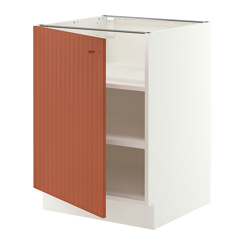 SEKTION base cabinet with shelves, white / Terrsjö red-brown wave pattern