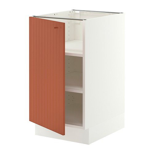 SEKTION base cabinet with shelves, white / Terrsjö red-brown wave pattern