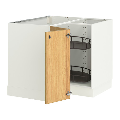 SEKTION corner base cabinet with carousel, white / Sinarp oak veneer