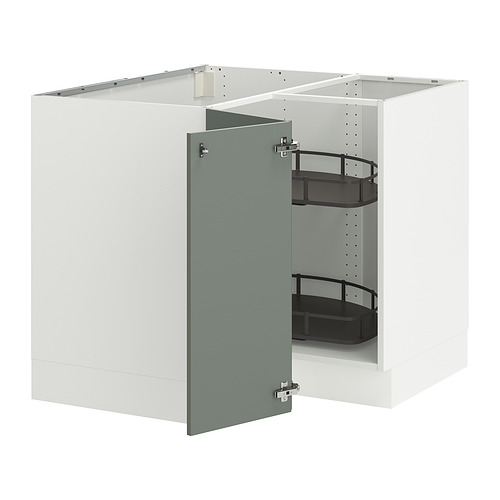 SEKTION corner base cabinet with carousel, white / Nickebo matte grey-green