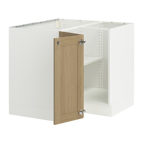 SEKTION corner base cabinet with shelf, white / Vedhamn oak