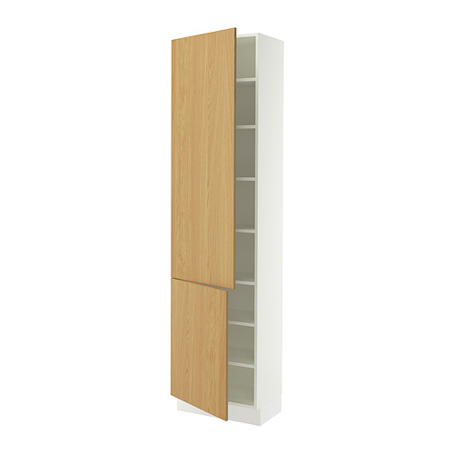 SEKTION high cabinet with shelves / 2 doors, white / Sinarp oak veneer