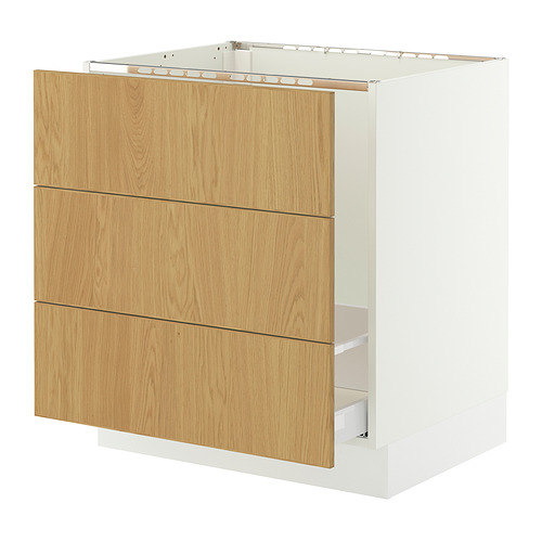 SEKTION / MAXIMERA base cab f sink / waste sort / 3 fronts, white / Sinarp oak veneer
