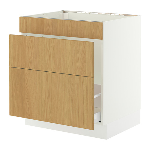 SEKTION / MAXIMERA base cab f sink / waste sort / 3 fronts, white / Sinarp oak veneer