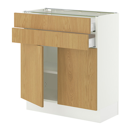 SEKTION / MAXIMERA base cabinet w 2 doors / 2 drawers, white / Sinarp oak veneer