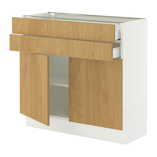 SEKTION / MAXIMERA base cabinet w 2 doors / 2 drawers, white / Sinarp oak veneer