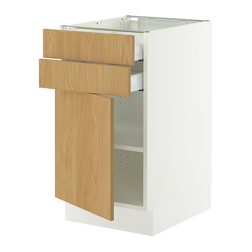 SEKTION / MAXIMERA base cabinet w door / 2 drawers, white / Sinarp oak veneer