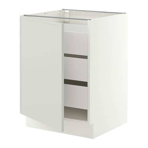 SEKTION / MAXIMERA base cabinet with 1 door / 3 drawers, white / Aspudden light gray
