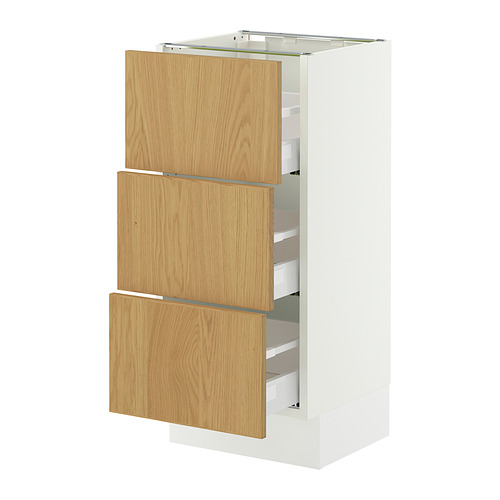 SEKTION / MAXIMERA base cabinet with 3 drawers, white / Sinarp oak veneer