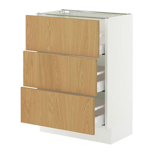 SEKTION / MAXIMERA base cabinet with 3 drawers, white / Sinarp oak veneer