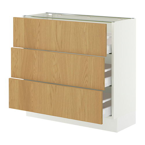 SEKTION / MAXIMERA base cabinet with 3 drawers, white / Sinarp oak veneer