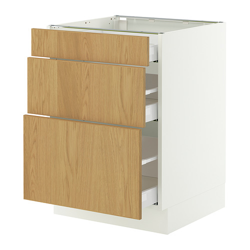SEKTION / MAXIMERA base cabinet with 3 drawers, white / Sinarp oak veneer
