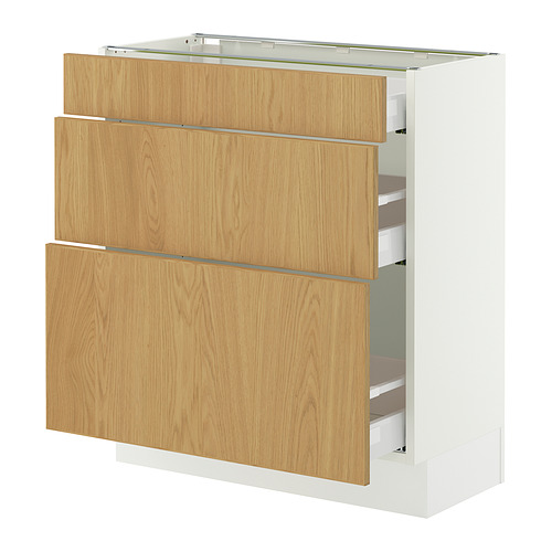 SEKTION / MAXIMERA base cabinet with 3 drawers, white / Sinarp oak veneer