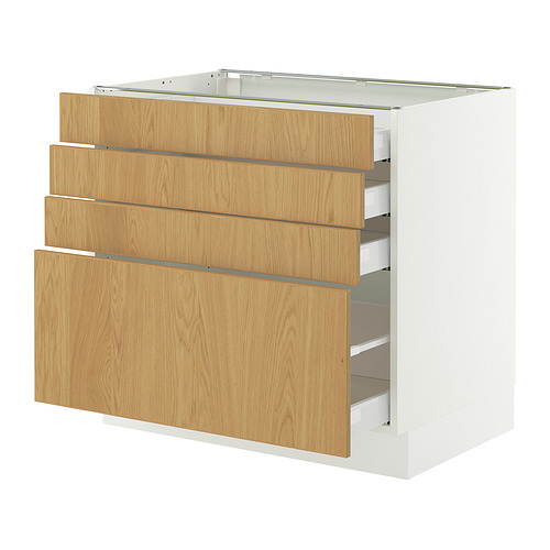 SEKTION / MAXIMERA base cabinet with 4 drawers, white / Sinarp oak veneer