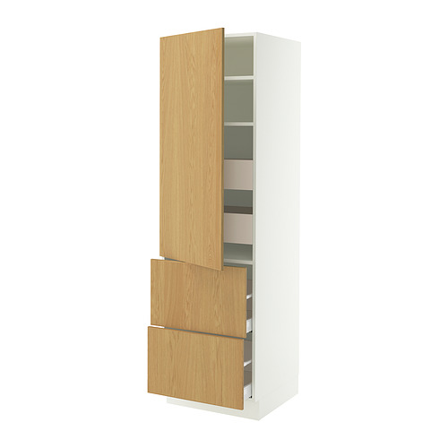 SEKTION / MAXIMERA high cab w door / 2 fronts / 4 drawers, white / Sinarp oak veneer