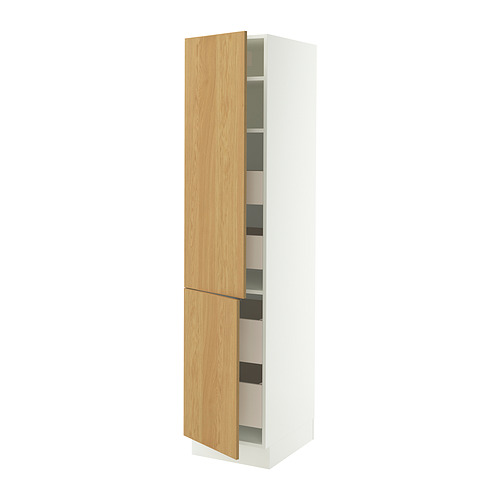 SEKTION / MAXIMERA high cb w 2 doors / shelves / 4 drawers, white / Sinarp oak veneer