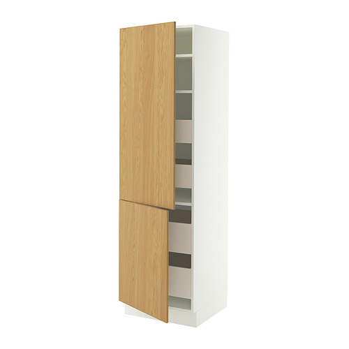 SEKTION / MAXIMERA high cb w 2 doors / shelves / 4 drawers, white / Sinarp oak veneer
