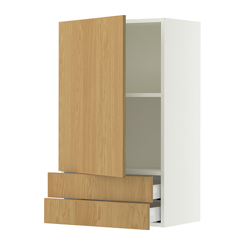 SEKTION / MAXIMERA wall cabinet with door / 2 drawers, white / Sinarp oak veneer