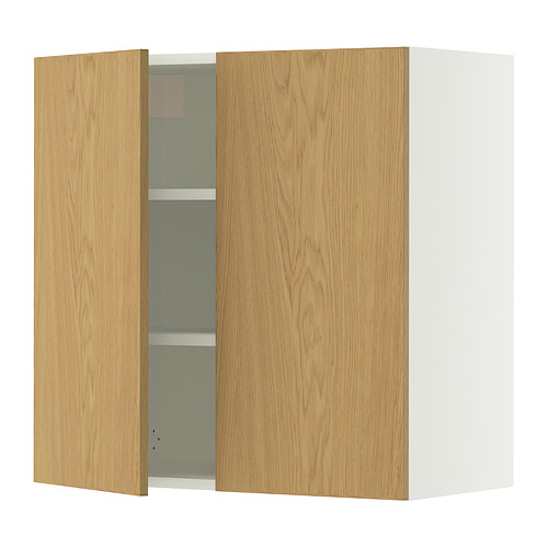 SEKTION wall cabinet with 2 doors, white / Sinarp oak veneer